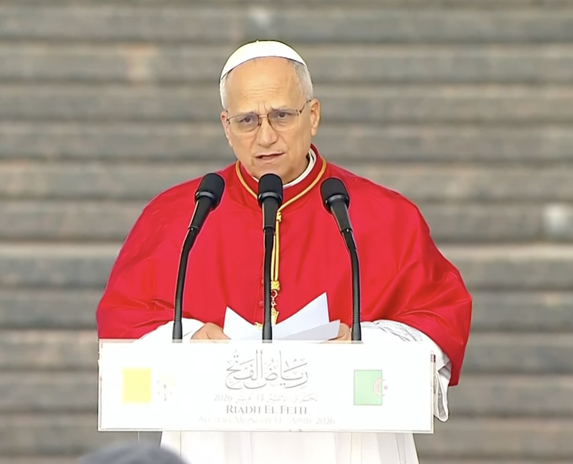 12:26 : Fin du discours du Pape au Monument des Martyrs. Léon XIV se dirige maintenant vers le Palais présidentiel pour une visite de courtoisie au président de la République algérienne
